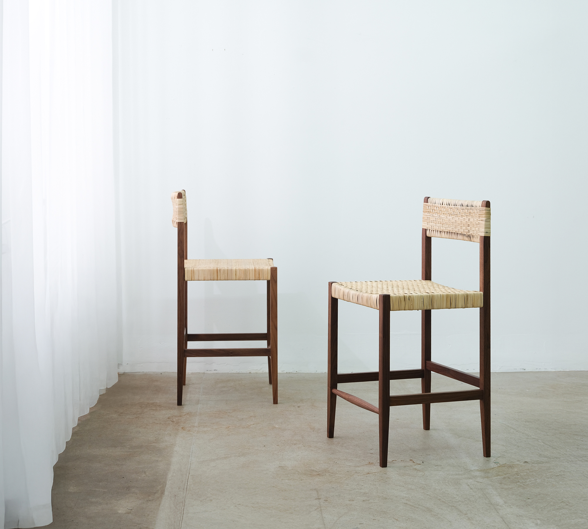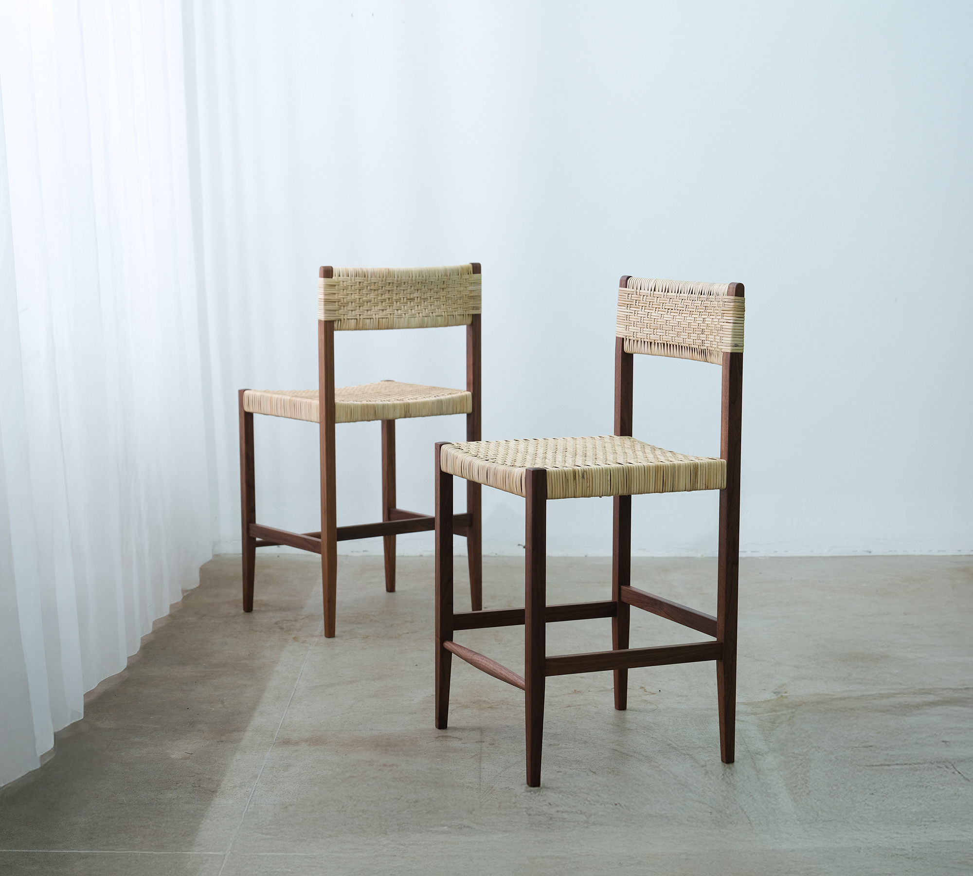 ラタンとウォールナットを用いた
